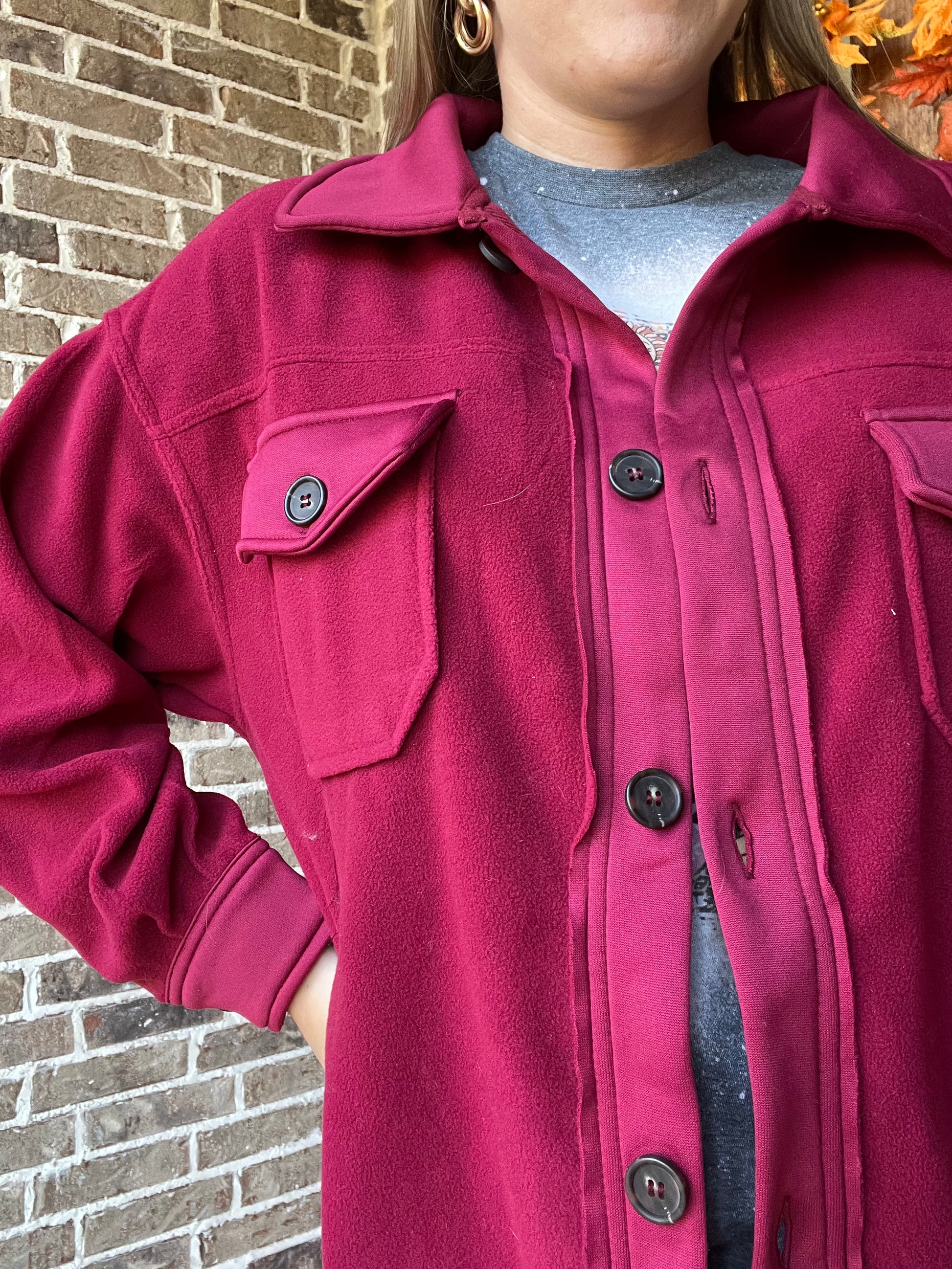 A closet staple! It is so good you need both colors. A fleece shacket that pairs great with graphic tees. Features collard neck, buttons down the front and at wrists/chest pockets, and has elbow patches. This does fit TTS.